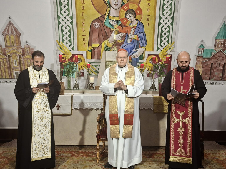 Erdő Péter bíboros főpásztori látogatására és közös imaórára került sor tegnap az Orlay utcai örmény katolikus templomban. A találkozón az örmény hívekkel zsúfolásig megtelt templomban magyarul osztották meg elhivatott szolgálatukkal kapcsolatos gondolataikat és hitvallásukat Mashdots Zahterian patriátusi vikárius és Bedros Marshalian atya, aki elkötelezett a magyarországi örmény közösség hitéleti szolgálatban történő összefogására. A magyarországi örmények Bedros atyát alig pár hónapja történt megérkezését követően hamar a szívükbe zárták s remélik szolgálata hosszú időkre Budapesthez köti majd.